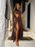 Ele é manga longa unilateral, possui recorte na cintura com fivela adornal e detalhes no colo em búzios que trazem um ponto de luz na peça. Na parte debaixo possui uma maxxi fenda.